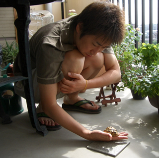 僕の手のひらの上でしばし日光浴。